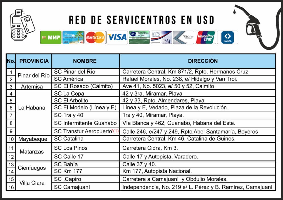 Como las tarjetas emitidas en EUA no son posible usar en la Isla te sugerimos adquirir las Tarjetas Clásicas que son válidas para la adquisición de una amplia gama de bienes y servicios en comercios minoristas y mayoristas equipados con terminales POS, además del caso particular que nos ocupa que es la compra de combustible.